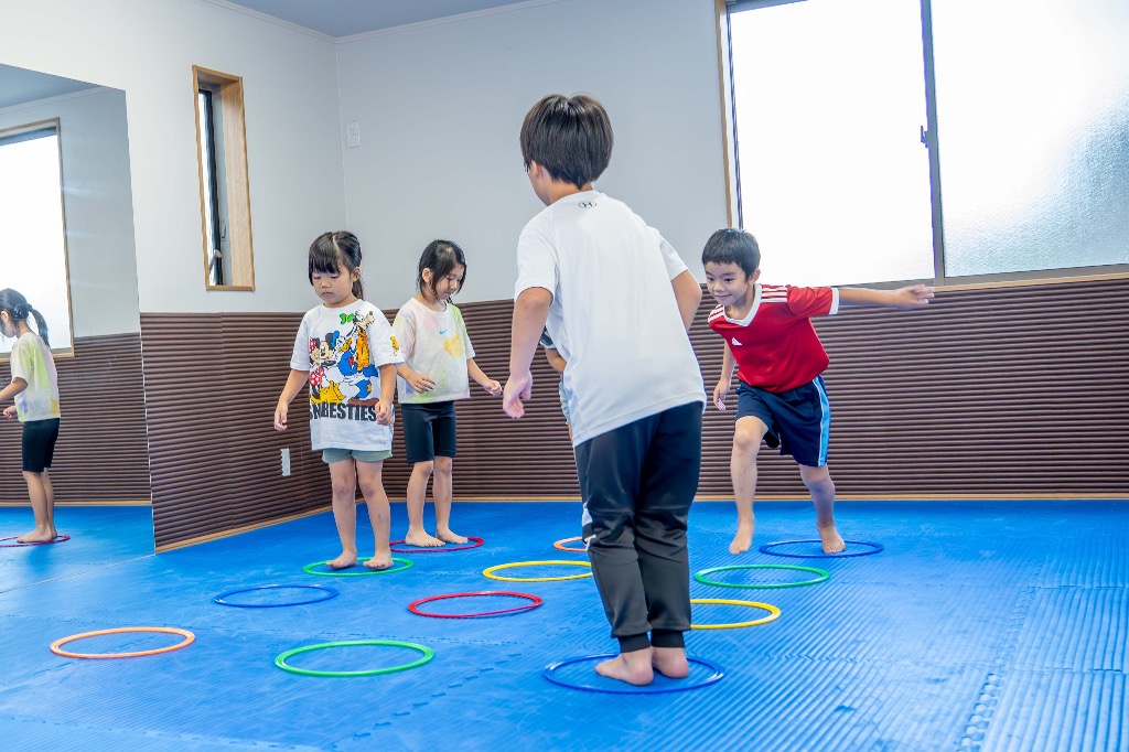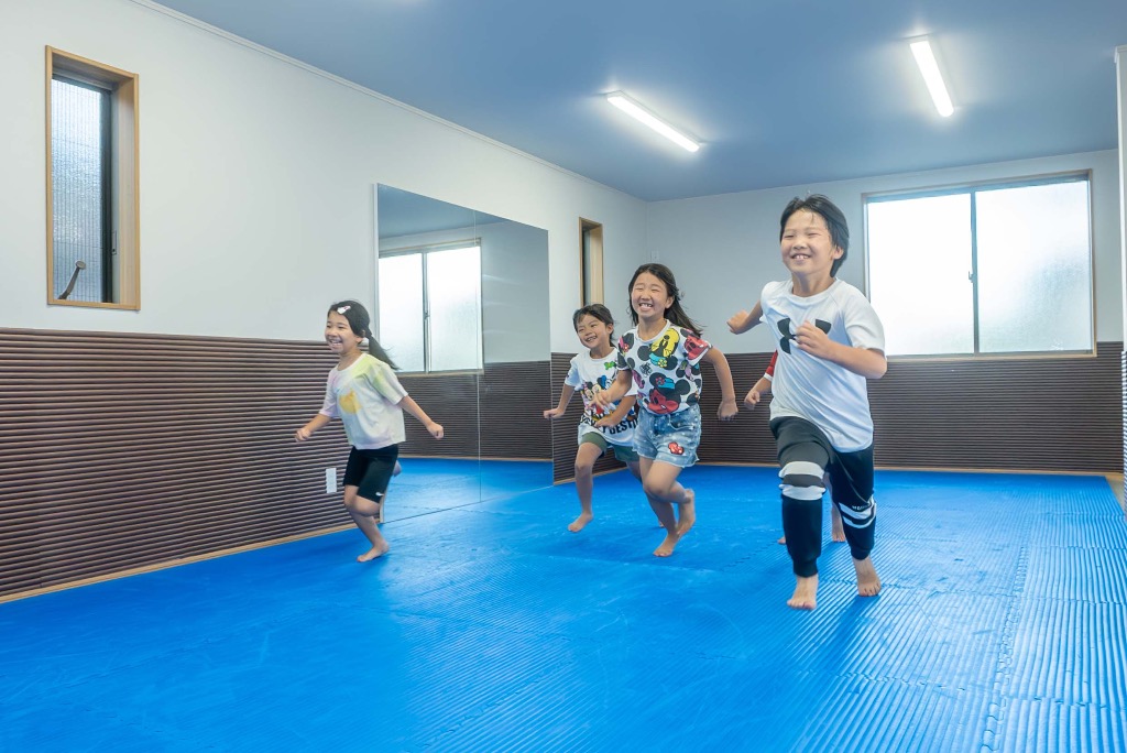 小学校に上がった際の体育の授業での地域のお子様に安全な運動環境と質の高い運動教育を提供したいという考えの下、無理なく通える駅チカに教室をオープンいたしました。あーる接骨院が入っている建物の二階で和気あいあいとレッスンを行っております。